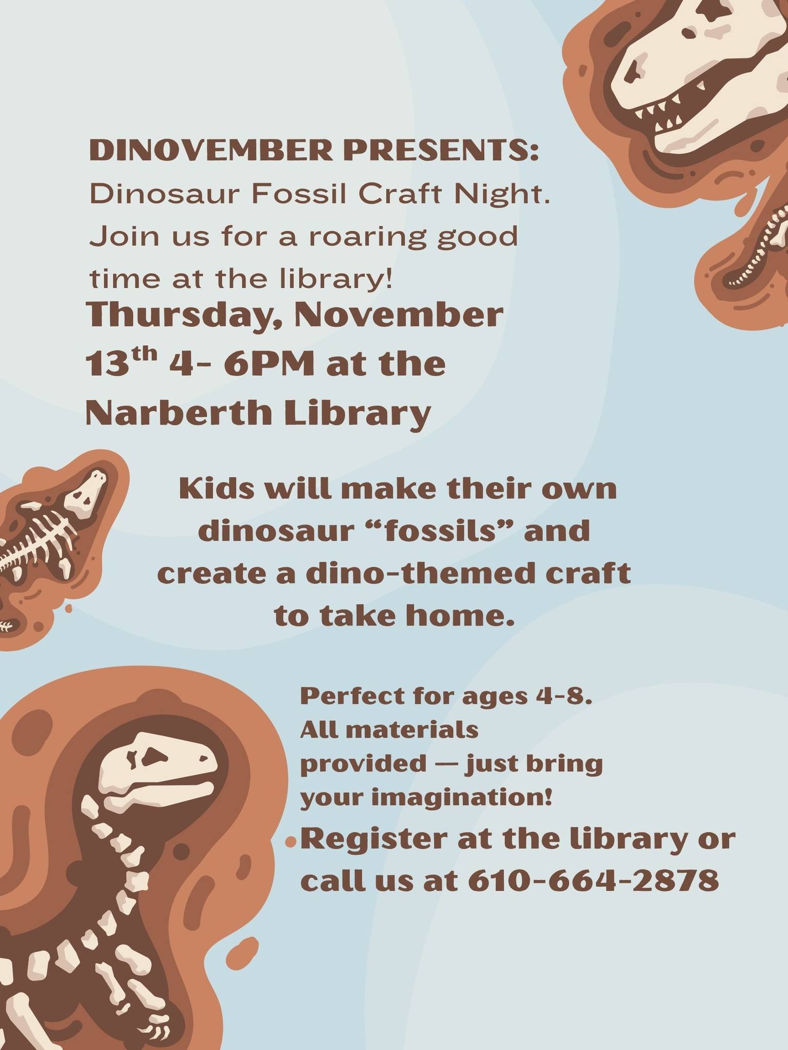 ![]() Narberth Library | 🦖 Narberth Library! Thurs, Nov 13th from 4-6pm