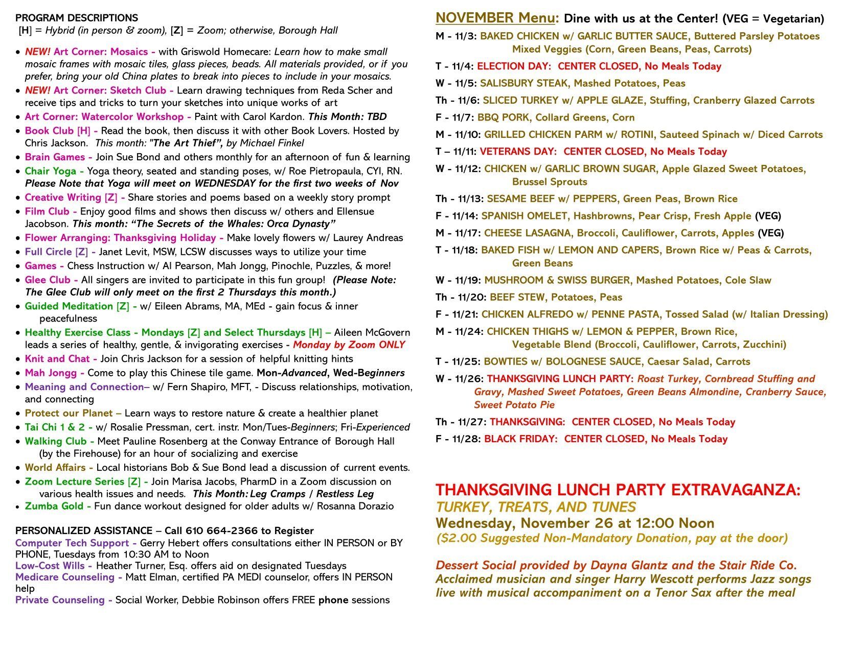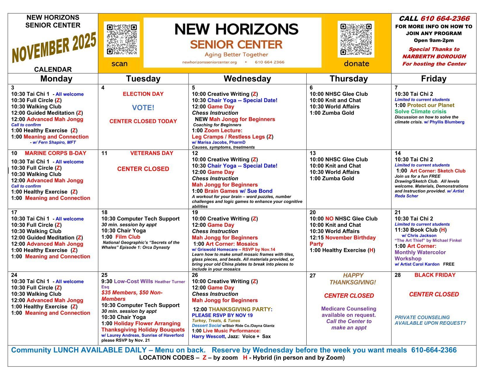 ![]() NOVEMBER Events- New Horizons Senior Center | ![]() Description of Classes |