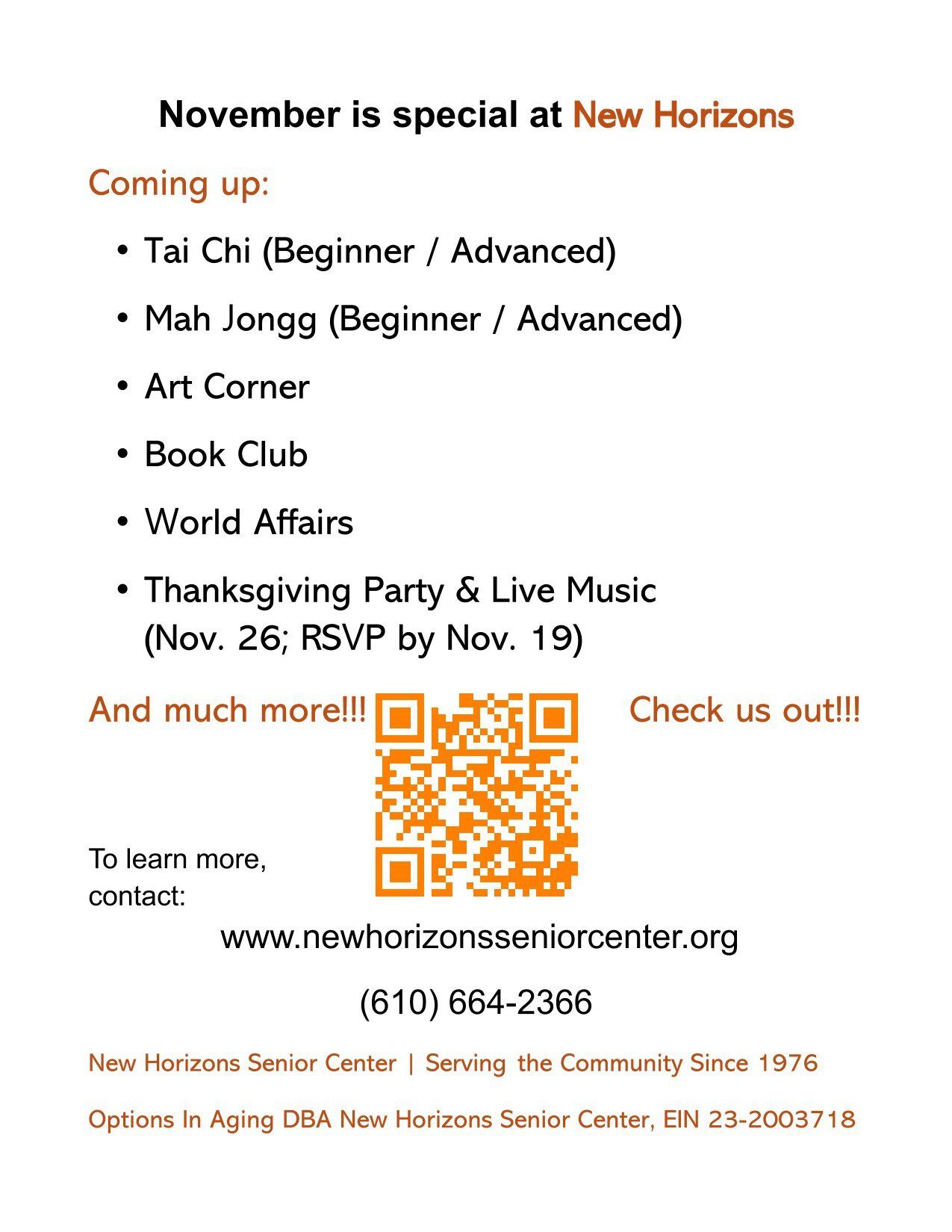 ![]() NOVEMBER Events- New Horizons Senior Center | ![]() |