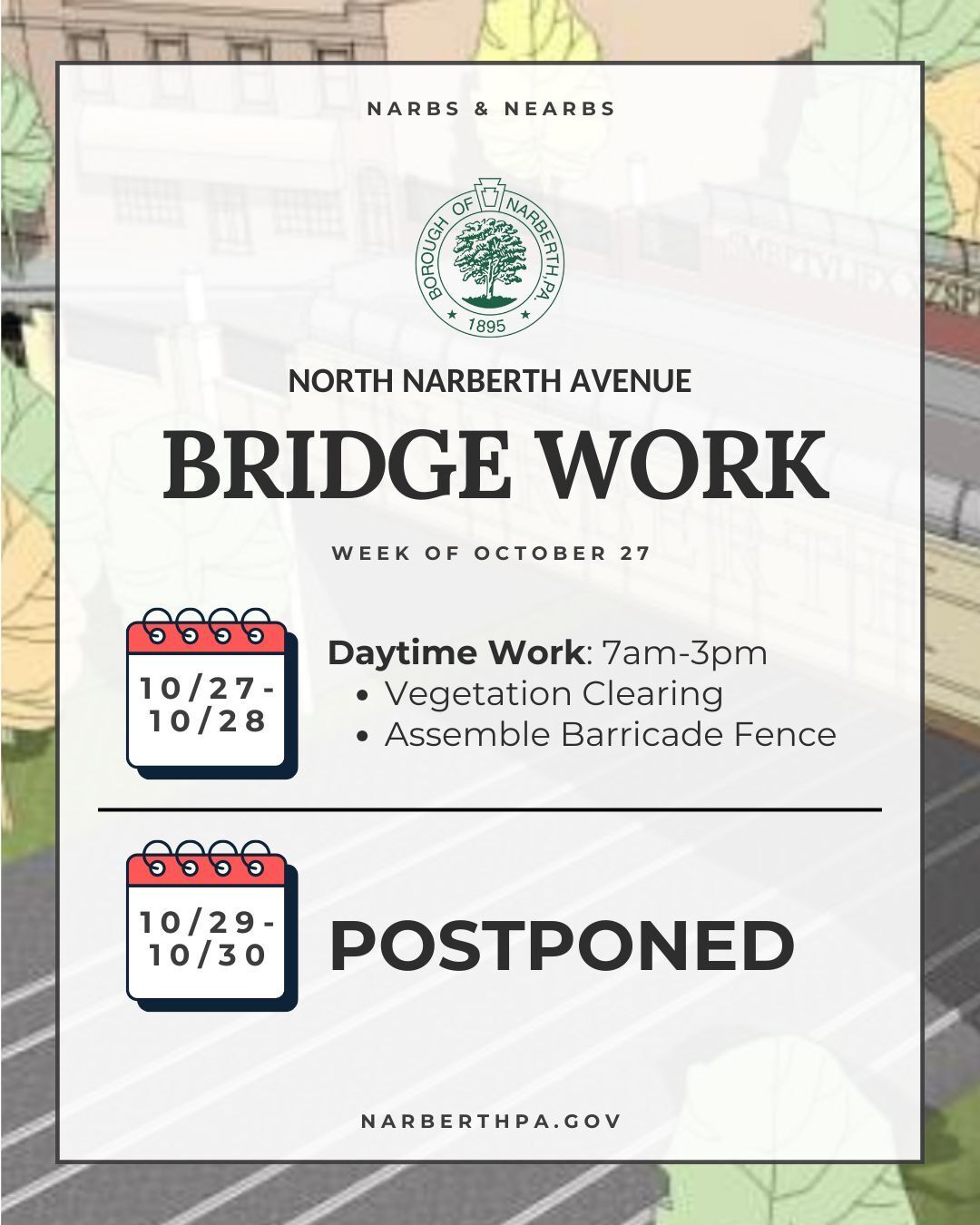 ![]() Narberth Borough FB Page | 🚧 Notice of Upcoming Bridge Work-UPDATE