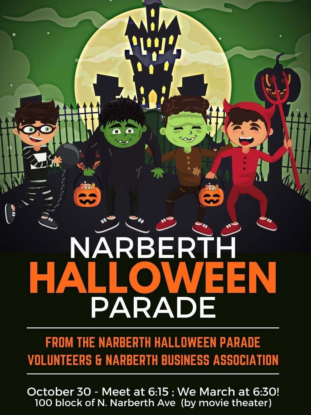![]() Narberth Online FB Page | 🎃 Narberth Halloween Parade!Join the fun on Thursday, October 30! Bring a candy bag and invite your neighbors! 🧡 |
