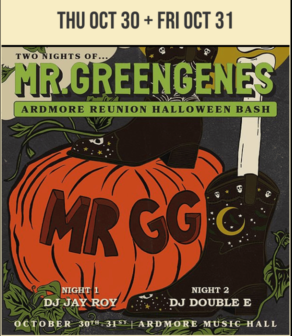 ![]() Ardmore Music Hall | 🎃 Two Nights of Mr. GreengenesGet ready for back-to-back nights of high-energy fun as Mr. Greengenes returns to AMH for their Reunion & Halloween Bash! Thursday, Oct 30th w/ DJ Jay Roy Friday, Oct 31st w/ DJ Double E 🕒 Seated Doors: 6:45 PM | GA Doors: 7:15 PM | Show: 8:00 PM |