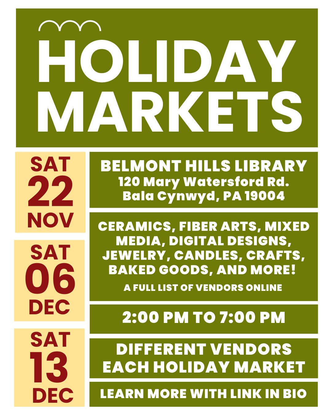 ![]() Gladwyne Library Holiday Craft Market | ![]() |