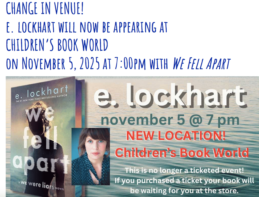 ![]() Children’s Book World | Meet Author E. Lockhart |